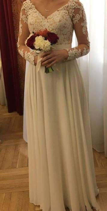 Продается свадебное платье Nora Naviano. Состояние нового, только после химчистки. Идеально подходит для свадьбы зимой и весной. Размер 42-44, было подшито на рост 168+ каблук 7 см. Без шлейфа. Есть разрез. В комплекте нет ленты для корсета - потерялась. Также в комплект к платью можно приобрести украшение в прическу. Стоимость платья - 27 000 рублей. Торг уместен.