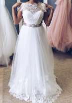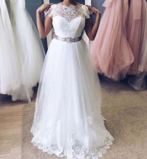 Платье совершенно новое. Не надевалось ни разу по причине того, что покупалось 2 платья и проходила весь день в первом, это не успела надеть. Не требует химчистки и отпаривания. В чехле и на вешалке. Полностью ручная работа. Отшивалось в свадебной мастерской "Пион" в Санкт-Петербурге. Единичный экземпляр. Невесомое, очень легкое, без всяких колец.