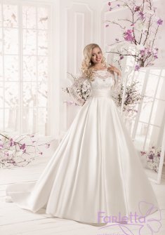 Платье с кружевным верхом и шикарной атласной юбкой. Кольца под юбку прилагаются.