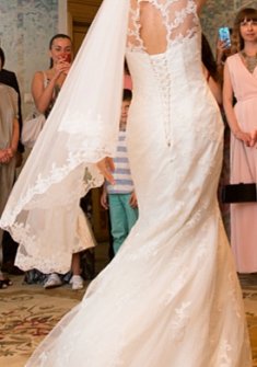 Силуэт "рыбка", из красивого кружева, выгодно подчеркивает фигуру своей обладательницы. Кружевной шлейф, полупрозрачный кружевной верх и тонкая сетчатая ткань с мушками под основным кружевом. Платье на корсете, цвет айвори. Имеется скрытая петелька, для удобства шлейф можно закрепить на платье. Покупалось в салоне "Торжество" в 2017 году. В чехле для хранения и транспортировки. В идеальном состоянии после химчистки. Счастливой покупательнице красивая кружевная фата в подарок. ТОРГ УМЕСТЕН.