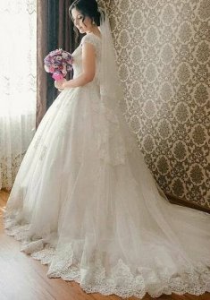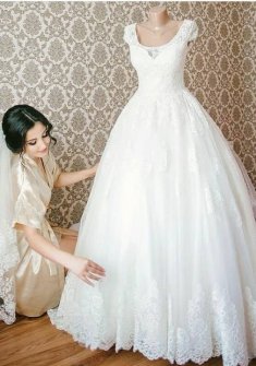 Продаю роскошное свадебное платье цвета Айвори Итальянского производства Diamante sposa. Платье сшито из очень красивых и приятных материалов, лёгкое и изящное, тончайшие узоры подчёркивают талию. Сзади лёгкий шлейф не мешающий передвижению (при желании его легко можно собрать, пристегнуть к платью на пуговички). Длинна платья с кольцами 170см. Хранится в фирменном чехле. В подарок отдам подюбник с 7ю кольцами. Недавно с химчистки. Идеальное состояние.