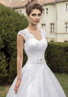 Новое свадебное платье Armonia Пальмира. Размер 42-44, скорее 44. Цвет айвори. Надевалось пару раз на примерку. Нежное свадебное платье с закрытым верхом. Талию подчеркивает ручная вышивка бисером и камнями Swarovski. Платье выполнено из тонкого французского кружева Шантильи. Купила, а потом, спустя месяц, обнаружила, "свое" свадебное платье, перед которым не смогла устоять. Поэтому оно новое, неношеное. Покупала платье в Доме Веста в Москве.