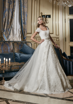 Свадебное платье цвета айвери от дизайнера Евы Уткиной со съёмным шлейфом.