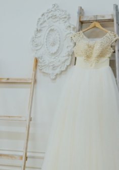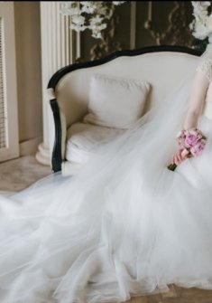Добрый день! Продаю свое любимое и самое счастливое свадебное платье от Татьяны Каплун "Медея". В отличном состоянии. Размер корректируется от 42 до 48. Цвет - Ivory, жемчужины ручной работы, юбка - фатин, шлейф 2 метра. В комплекте подъюбник 3 кольца и украшение для прически. Торг уместен.
