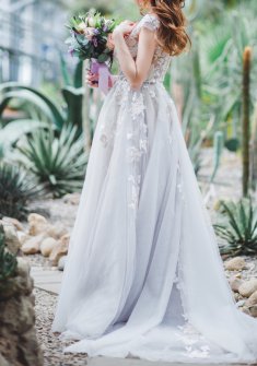 Продам платье, покупала в салоне на Таганке, размер 42-44, НЕ БЕЛОЕ, цвет серо-голубой с сиреневым отливом,при дневном освещение цвет шикарный. Длинный шлейф, есть застёжка для того, чтобы убрать его. Померить приехать можно в любое время. Имеется также фата,отдам бонусом. Доп.фото по запросу, видео тоже могу отправить. тел. 89269040576