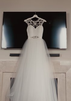 Ручная дизайнерская работа. В меру пышная фатиновая юбка с небольшим шлейфом (всего 15 метров фатина, 4 юбки). Подъюбник - натуральный шелк. Корсаж со вшитыми чашечками (сзади молния) привлекательно оголяет спинку. Талию обхватывает поясок с аппликацией из кристаллов. Плечи и спину покрывает "паутинка", длиной в 6,5 метров, расшитая Сваровски. Каждый страз намертво пришит вручную! После химчистки. БОНУСОМ подарю длинную фату (около 5-ти метров). Если найду))).