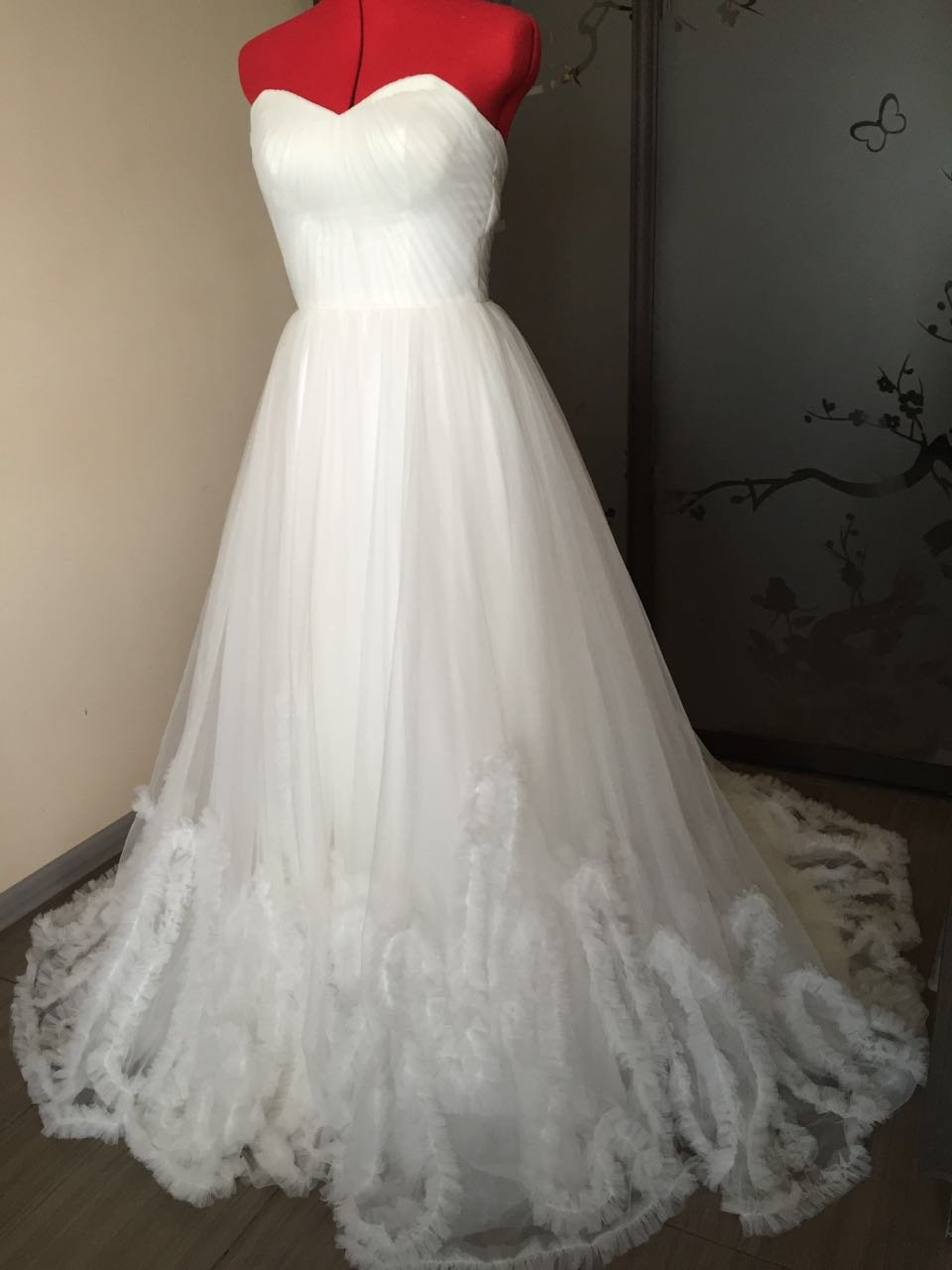 Новое, воздушное свадебное платье, сшитое на заказ!!! Подойдет девушкам с размером 42, так и на 44-46 размер. Сзади шнуровка, за счет этого регулируется размер. (сзади шнуровки спинку закрывает атласная материя, на фото ее нет). Идеально на девушку с ростом 170-173 см. Новую фату к платью отдам в подарок))