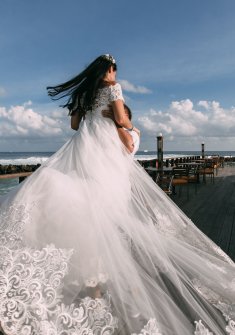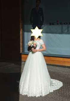 Продам свадебное платье цвета айвори с великолепным шлейфом. Для удобства шлейф собирается и крепится на кнопках к платью. Платье б/у 1 раз, после чего прошло химчистку. К платью прилагаются: подъюбник с двумя кольцами, фата, туфли. Размер платья 42-44, размер туфель 36-37. При необходимости могу выслать в whatsapp дополнительные фото (вблизи сфотографирован шлейф, корсет).