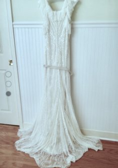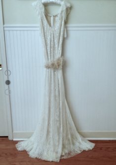 Изысканное платье Vera Wong Couture Chantilly Lace Gown, покупалось как второе. Расшито пайщиками - при движениях очень красиво струится и слегка переливается. В комплекте цветочный поясок. Легкое и элегантное облегание "по фигуре".