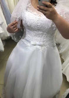 Продам свадебное платье. Замуж в нем НЕ выходила, только для фотосессии. Покупалось за 32000, отдаю за 25000 в комплекте с кольцами для платья и химчисткой. Можем договориться, так как знаю как тяжело найти платье на полненьких еще и невысокого роста. Платье легкое и удобное. Корсет 48-56 размер на широкой ленте, ручная вышивка красивый подол, также украшенный вышивкой