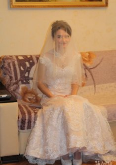 Платья А-силуэта, очень красивый шлейф как раз для фото-сессии, шлейф можно пристегнуть к платью на кнопках и получиться платье без шлейфа. У платья свой подъюбник. Цвет: кружева - айвори (поверх основной ткани), основная ткань - светлое какао. Расшито бисером. Еще есть шубка, фата и туфли 37 размер.