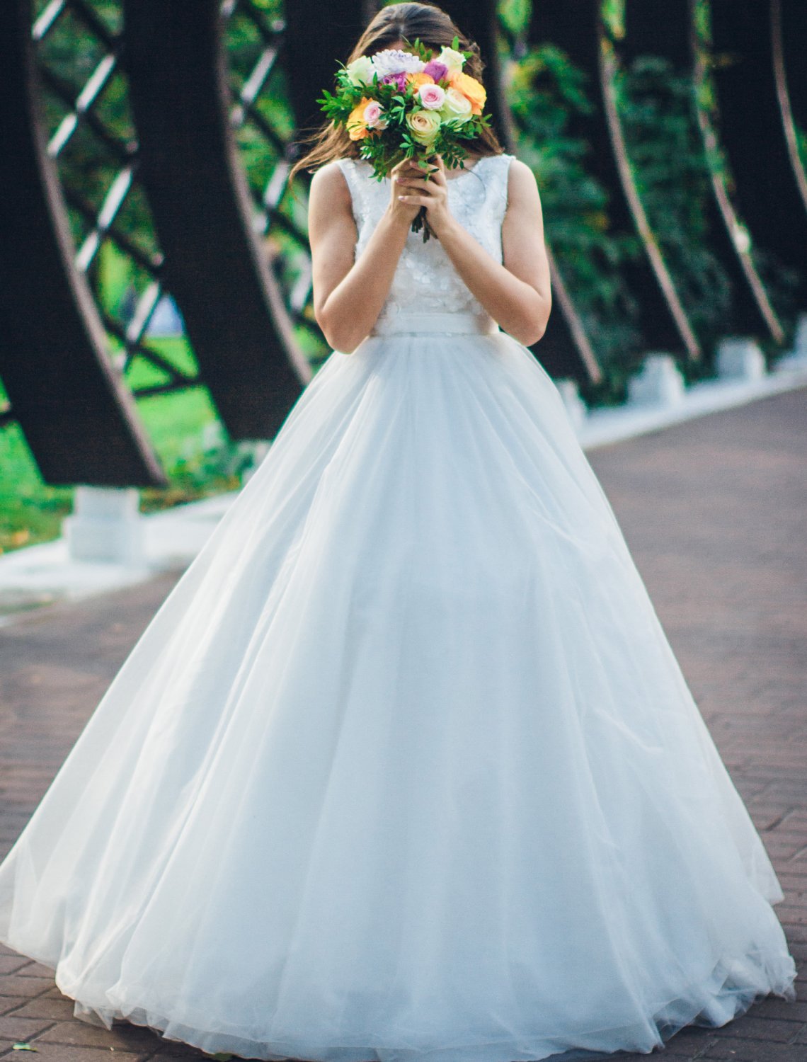 Дизайнерское свадебное платье в отличном состоянии. Надевалось на 2 часа на съемку. С голой спинкой.