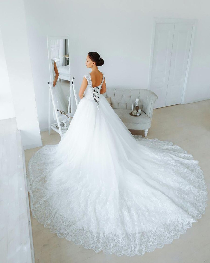 Продаю своё безумно красивое свадебное платье. Платье итальянского бренда Semida из фатина и итальянского кружева корд. На корсете вышитый узор. Размер 42. Рост мой 165 и плюс каблуки 7 см были. Шлейф, в случае чего, пристегивается на три пуговички. На платье нет блесток, страз. Оно очень лаконичное. Мне было очень удобно в нем, несмотря на то, что оно тяжелое. Обруча нет, но у меня был с 5-ю кольцами. Торг возможен. Платье выглядит идеально. Есть видео нынешнего состояния платья.