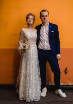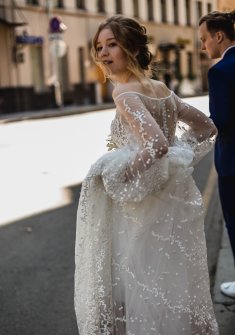 Платье надевалось один раз, 17 августа. Прошло процесс химчистки, находится в отличном состоянии