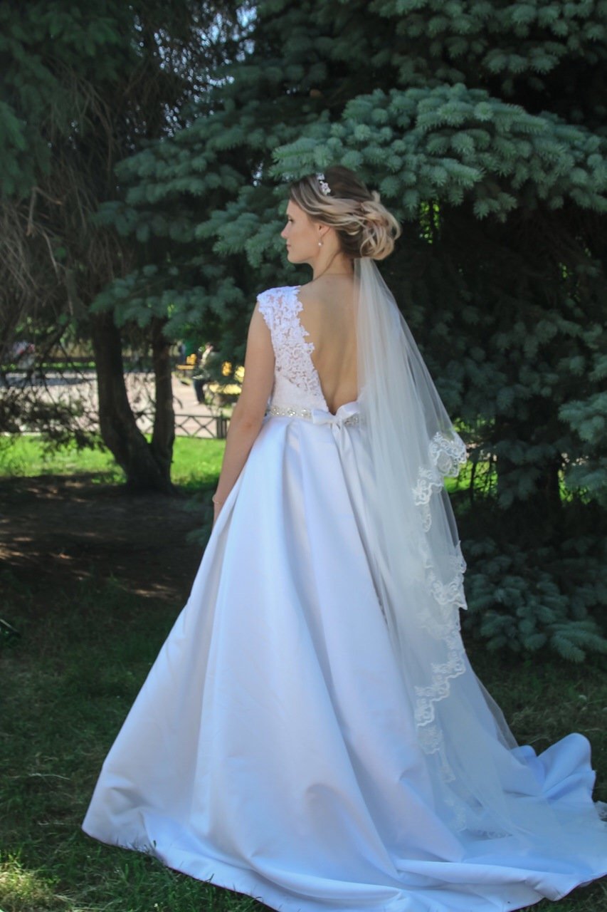 Продаю очень нежное свадебное платье☺️ длинный шлейф, можно пришить маленькую пуговку, чтобы во время танца не мешал. Юбка пышная, под платье можно одеть подъюбник с кольцами, будет как у принцессы.