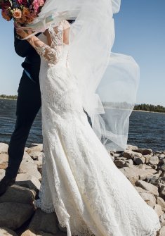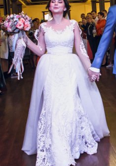 Платье-трансформер, силуэт рыбка, сверху пышная юбка-шлейф. Цвет молочный, сзади шнуровка. После хим. чистки, состояние отличное. м. Полежаевская. Больше фото в whats app 89778461525