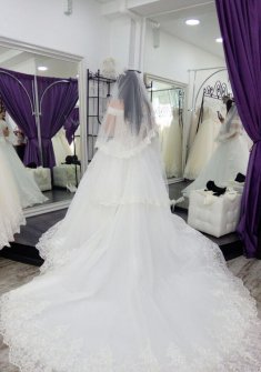 Продам свадебное платье, платье сделано на заказ, из Барселоны, размер регулируется, с длинным шлейфом, продам с дополнительными кольцами. Несмотря на шлейф и пышность, платье очень легкое, все вопросы по телефону