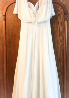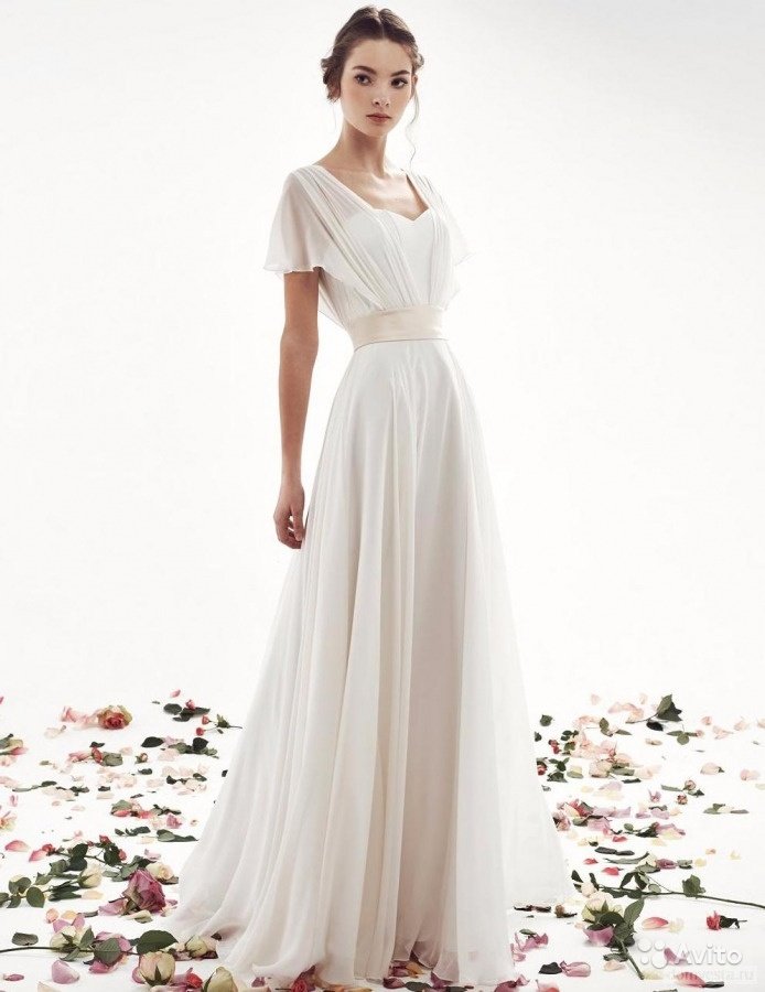 Продам свадебное платье цвета айвори шампань, размер 46. Воздушное платье из шифона поможет невесте создать нежный и загадочный образ. Платье выполнено в греческом стиле, спинка открытая, с корсетом и шелковым подъюбником. Струящаяся юбка и лиф с полупрозрачными драпированными бретелями придают ему неповторимое очарование. Покупалось в оригинальном бутике в Москве за полную стоимость. Сейчас такое новое стоит 40 т.р. Платье после химчистки, отглажено, висит в чехле.