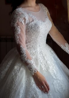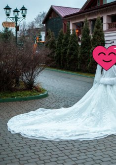 Продаю королевское итальянское платье со шлейфом и красивой вышивкой. Платье в идеальном состоянии, ношено 1 раз, после химчистки. При необходимости шлейф пристёгивается на крючок. Кринолин в подарок.