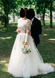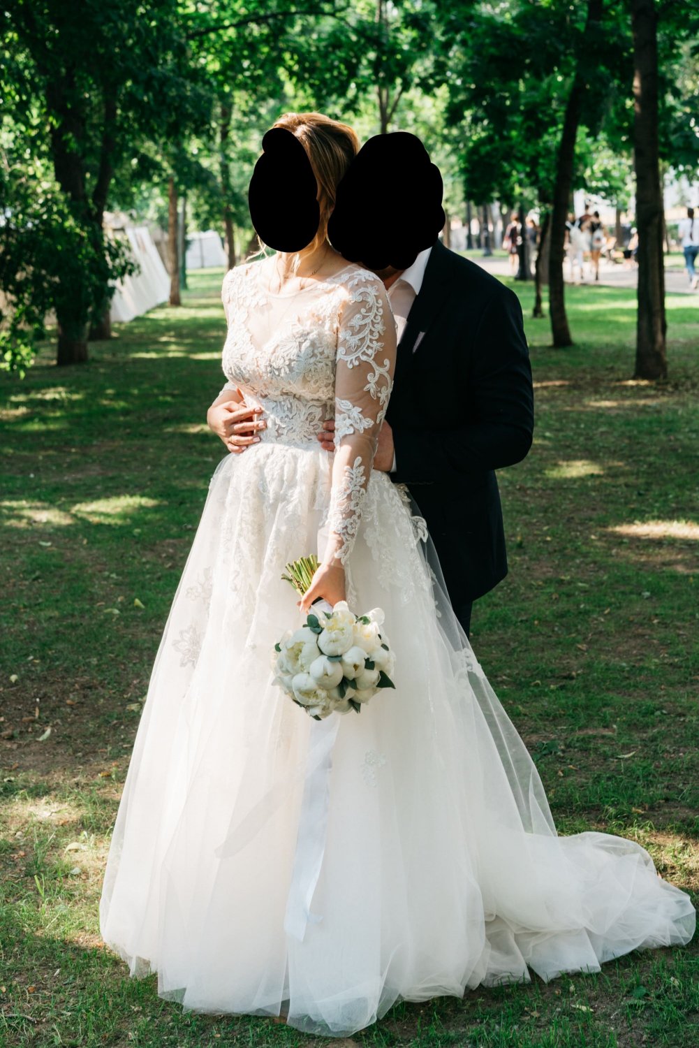 Продаю свадебное платье Gabbiano (коллекция 2019). Куплено в мае 2019, было сшито под мои параметры: Обхват груди:96 Обхват под грудью:79 Обхват талии:75 Платье было надето на несколько часов, только в загс и для мини-прогулки для фото. Имеется поясок, розовый, я его не надевала. Платье после химчистки. На рост 164 см + 10 см каблук. С небольшим корсетам (стягивает и скрывает несовершенства), можно надевать без нижнего белья, удобное, не тяжелое! Возможен торг.