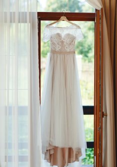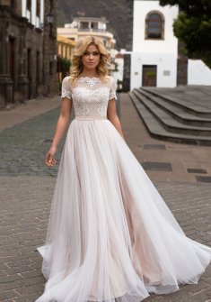 Продаю свадебное платье А-силуэта с закрытыми плечами от дизайнера Навиблю Брайдал, коллекция 2017 года. Верх украшен кружевом с небольшими рукавами. Линия талии подчеркнута бежевым пояском. Основной материал: мягкий фатин, кружево. Цвет – капучино. Платье было куплено в салоне Мэри Трюфель в 2017 году за 46 000 руб. Одевалось один раз в 2017 г., в хорошем состояние. Необходима химчистка подола платья. Уместен разумный торг. Размер – SX (40-42) На рост 160-170 см.