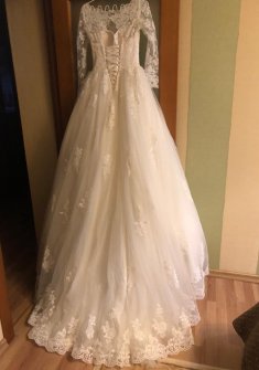 Продам свадебное платье. Цвет айвори. Размер 40-44. Рост до 175 см. Качественное, английский дизайн бренд LOVE BRIDAL, надевалось один раз на торжественную часть. Состояние нового. Пышность платья регулируется за счет съемного подъюбника. Один слой подъюбника убирали, чтобы платье было менее пышное. При заинтересованности готова направить дополнительные фото. Цена нового платья 110 000 рублей. В подарок фата на гребне (покупала за 7000) и подъюбник. Платье в чехле.