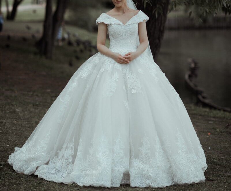 Платье очень красивое, низ сетки отшит евросеткой (наступишь и не страшно, что порвёшь), есть небольшой шлейф. После химчистки) торг уместен