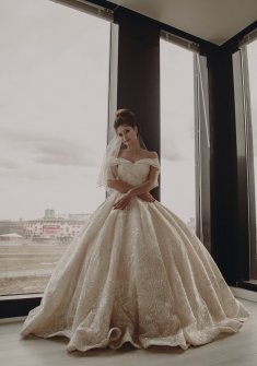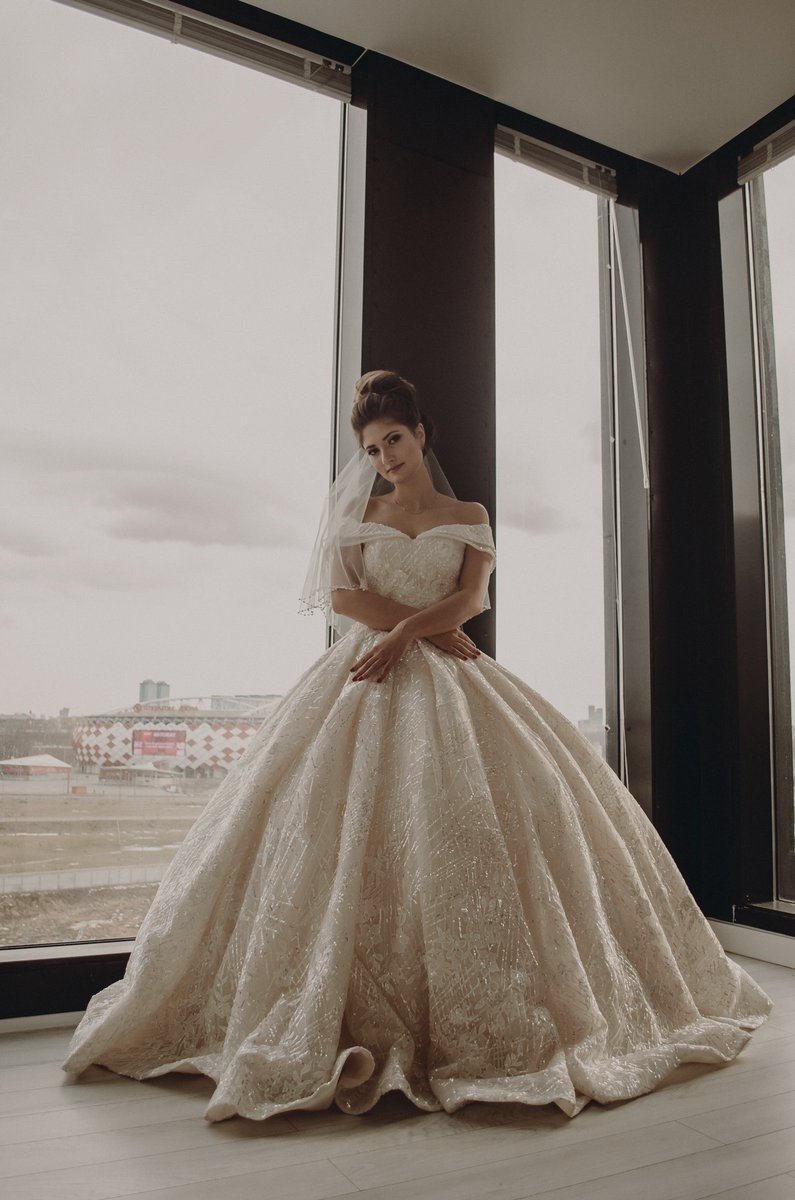 Роскошное свадебное платье со спущенными плечами. Расшитые свадебные платья — это тренд сезона: платье расшито камнями, стразами, бисером, пайетками, ручная вышивка, ткань с блёстками, платье смотрится дорого и богато. Силуэт с узким лифом и пышной юбкой подчеркнет трепетность и женственность невесты. Отдаю вместе с кольцом для платья.