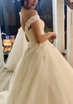 Платье абсолютно новое. В связи с пандемией не сыграли свадьбу, только в загсе расписались. Поэтому так и не надела платье. Юбка со шлейфом, материал - атлас. Корсет полностью расшит вручную бисером и стразами, регулируется по фигуре. Платье цвета айвори. Подойдёт на рост 160-175. Покупала за 62 800, продам за 25 000.