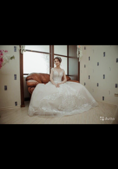 Свадебное платье бу, цвет кремовый, цена 15 000 руб. №12609