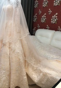 Итальянское персиковое свадебное платье. Покупалось в салоне La Sposa Italiana Ручная обшивка бисером и пайетками. В отличном состоянии, после хим.чистки и ателье!