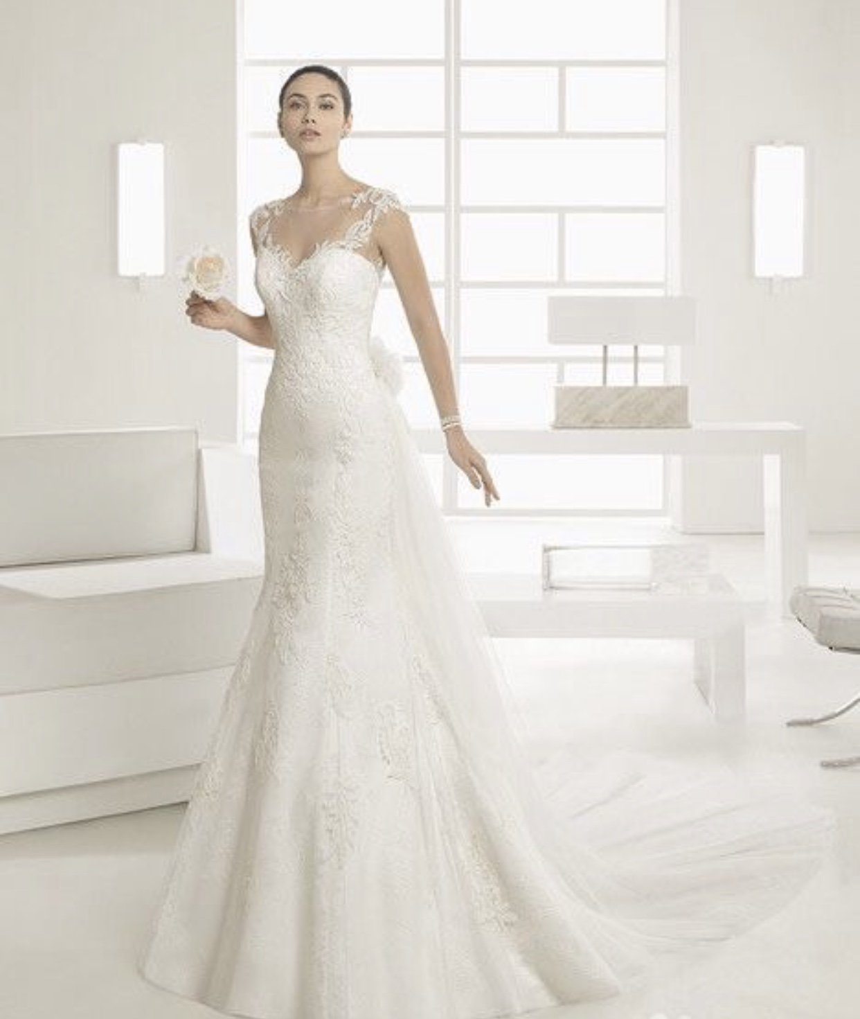 Торжественное красивое свадебное платье силуэта рыбка (русалка) известного испанского бренда Rosa Clara, модель Ocaso, цвет Ivory. Размер 46, но подойдёт и на 44-48. Очень красивое и элегантное, расшито кружевом. Без блёсток и страз. Покупала в марте этого года в салоне Аврора. В идеальном состоянии. Надето на 2 часа на фотосессию. Стоило 90 000 руб. Фата этого же бренда. Очень красивая, с кружевом, средней длины. В идеальном состоянии. Стоила 12 500 руб. Все вместе отдам за 30 тыс. руб.