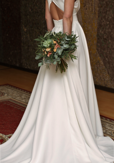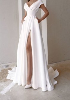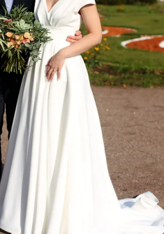 Свадебное платье в ИДЕАЛЬНОМ состоянии. Надевалось один раз на роспись и фотосессию в парке. Было отдано в химчистку, чтобы почистить шлейф. Дизайнер - Наталья Романова Модель - Элма Размер 44 Материал - атлас (очень плотный и приятный к телу) Приобреталось за 42 600. Платье невероятно красивое, подчеркивает фигуру, деликатно прикрывает область подмышек. С разрезом (при ходьбе не видно) и небольшим шлейфом. Первое фото с сайта, 2 и 3 - с обладательницы, рост 173 с каблуками около 10см.