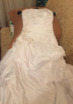 Свадебное платье Blue by Enzoani. Силуэт А. Смотрится шикарно, немного подшивала по фигуре. Размер 40-42. Платье просто потрясающее, покупали за 75 тыс. руб. Выглядит даже лучше, чем на фото. Продавать жалко, но что висит в шкафу «без дела». Наряд выполнен из шелковой тафты и украшен вышивкой из бисера, хрусталя и пайеток. Платье имеет внутренний корсет и длинный шлейф. Двухслойная юбка собрана в асимметричную драпировку.