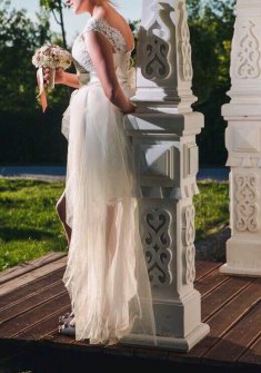 Свадебное платье бу, цвет кремовый, цена 1 500 руб. №12701