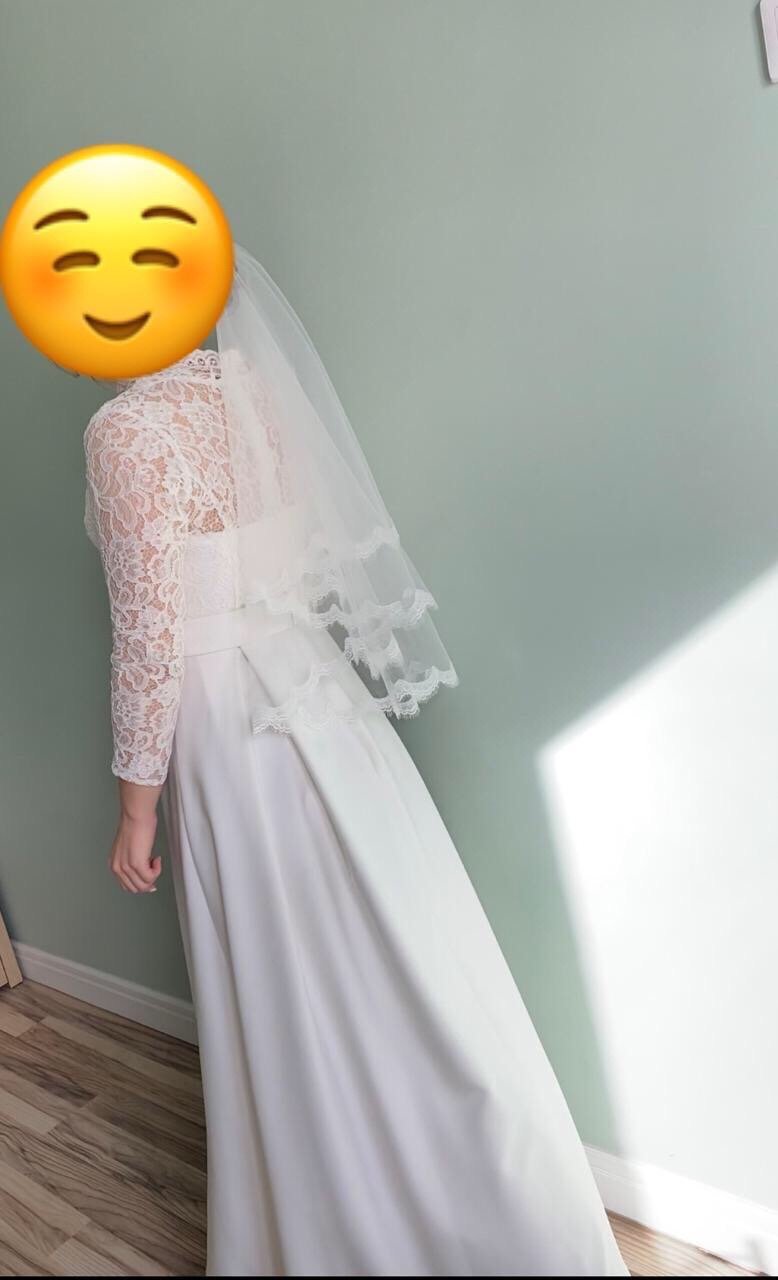 Покупала платье за 37000 ! в Никольском пассаже (бутик Rstalle) намного дороже. Юбка атлас+креп-сатин, верх - итальянское кружево отличного качества. Платье в отличном состоянии после химчистки. На рост 165. Возможен торг! В комплекте: платье, фата, ремень, чехол, вешалка.