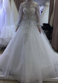 Безумно красивое свадебное платье, которое очень грустно продавать. Фото со свадьбы ещё не отдали, поэтому дополнительное фото и видео по запросу. Верх платья расшит бисером и пайетками, длинный шлейф. Очень красивая спина со шнуровкой. Вместе с платьем отдам фату с блестками и кольцо (3). Покупалось за большие деньги, надето мной 1 раз. Мой рост 170 + каблуки 10 см. После химчистки.
