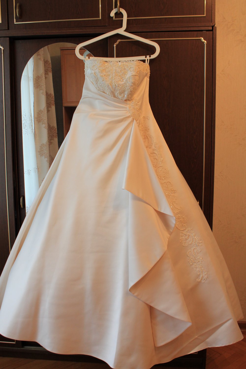 Платье красивое, классическое, нежное, с растительным орнаментом. На невесту с размером 48-50 и ростом от 170 см. В отличном состоянии, надевалось один раз. Фирменный чехол и подъюбник в подарок.