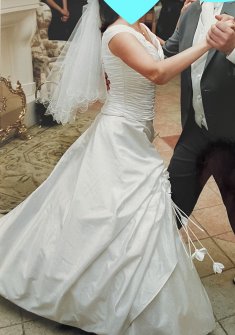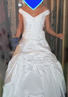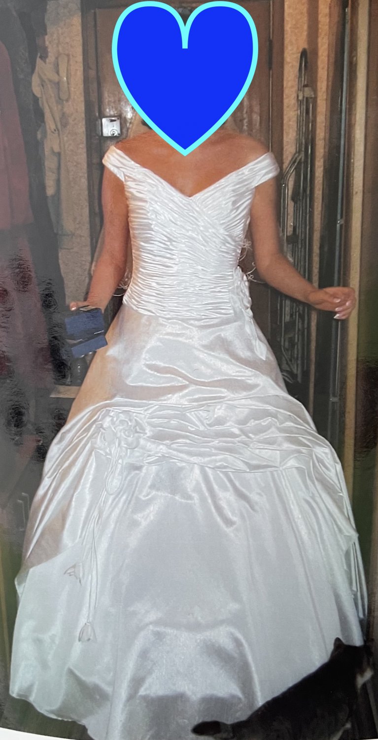куплено в салоне и надето на свадьбу 1 раз в 2005 году, после химчистки хранилось в пластиковых чехлах, продается в комплекте с подъюбником, накидкой из пуха, фатой