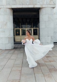 Продам шикарное свадебное платье - настоящее воплощение нежности. Чувственная драпировка верха, объемные рукава и открытая линия плеч дополнены пышной невероятно легкой юбкой. Рукава отдельно можно снять. В отличном состоянии. Смотрится нереально дорого. Высота платья 135 + 9 см каблук. Торг возможен