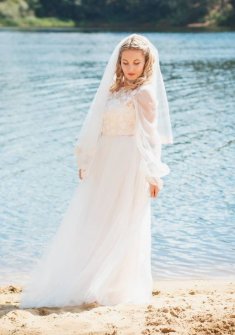 Свадебное платье бу, цвет кремовый, цена 10 000 руб. №13260