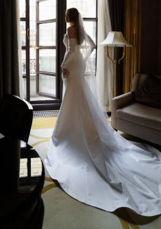 Платье Марсель, бренд Стрекоза. Русалка с высоким разрезом вдоль ноги. Купила в салоне "Мери Трюфель". В ателье не сажала по фигуре, что является большим плюсом, только добавила петельку на шлейф из бисера. Отдам в подарок перчатки, также в комплект входит фирменный кофр и бирки, при необходимости могу предоставить чек и доп фото. Весь верх в идеальном состоянии, без следов носки, без следов косметики и пр., едва заметные следы на подоле от пыли