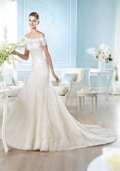 Элегантное свадебное платье St Patrick (от испанского бренда Pronovias) силуэтом русалка (рыбка) со шлейфом, который можно закрепить для удобства. В комплекте идет кружевное съемное болеро и нежная фата. Платье в идеальном состоянии