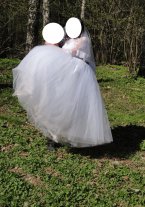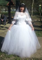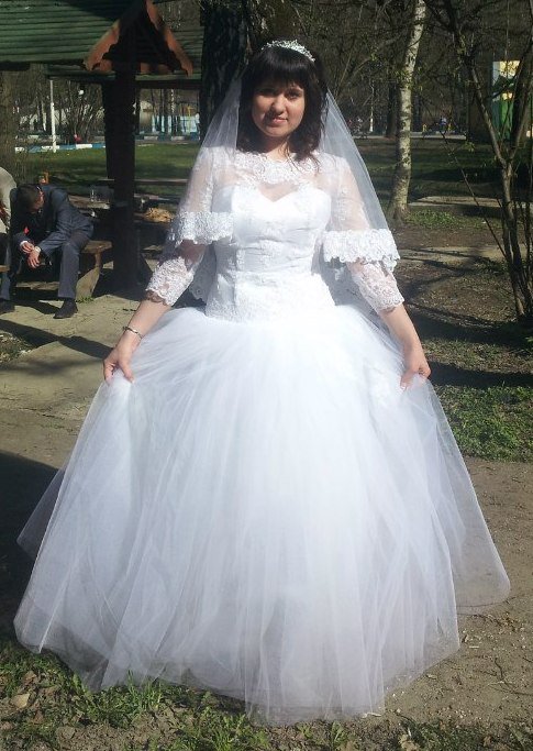 Продам красивое свадебное платье кипенно-белого цвета. Силуэт принцесса. Размер 46-48. Лиф с рукавами три четверти. Красиво расшитый ажурным кружевом. Пышная юбка, корсет на шнуровке-регулировка размера, подъюбник 2 кольца. Одето один раз. Платье после химчистки. К платью идет шубка-безрукавка белого цвета, мех искусственный. К платью прилагаю еще диадему и браслетик в виде короны.