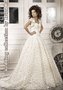 Свадебное платье со слегка заниженной линией талии. По корсету асимметричная драпировка. Пышная юбка со шлейфом из необыкновенного гипюра с замысловатыми узорами делает образ изысканным. К платью прилагается гипюровое фигаро. Платье подойдет невестам 42-50 размера.