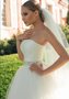 Элегантная классика! Лаконичное свадебное платье, без лишних деталей. Пышная фатиновая юбка делает образ по-королевски роскошным. Открытый верх корсета с прямым вырезом, без бретелей соблазнительно обтягивает грудь. Яркая деталь - поясок ручной работы, богато расшитый бисером и декоративными камнями и подчеркивающий талию.