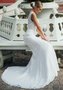 Элегантное свадебное платье прямого силуэта из тончайшего кружева. V-образный пикантный вырез эффектно подчёркивает женственную красоту зоны декольте и плавно переходит в широкие бретели. Небольшой шлейф является гармоничным продолжением романтичной длинной юбки. Модель представляет собой воплощение изысканности и элегантности!