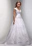 Нежное свадебное платье с глубоким и соблазнительным V-образным вырезом, широкими бретелями - плечиками и лёгкой драпировкой на груди. На бедрах расположилась лента изящной вышивки из пайеток. Подол пышной юбки украшен искусно выполненным кружевом с цветочным узором. Эта модель с небольшим шлейфом создана для самых романтичных натур.