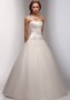 Элегантное свадебное платье, выполненное в лучших традициях. Классический А-силуэт, корсет, украшенный цветочными композициями, пышная юбка из невесомой ткани вместе создают удивительно легкий и романтичный образ. Безумно красивое шитье на корсете как будто сползает немного на юбку, тем самым объединяя верх платья и юбку в единый ансамбль.