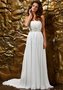 Удивительно красивое свадебное платье поражает простотой кроя и изысканностью декора. Открытый прямой лиф модели полностью задрапирован лёгкой тканью и подхвачен имитацией пояса, расшитой бисером. Длинная непышная юбка украшена достаточно большим шлейфом. Бесплатно: подгонка платья по фигуре, хранение платья, репетиция прически